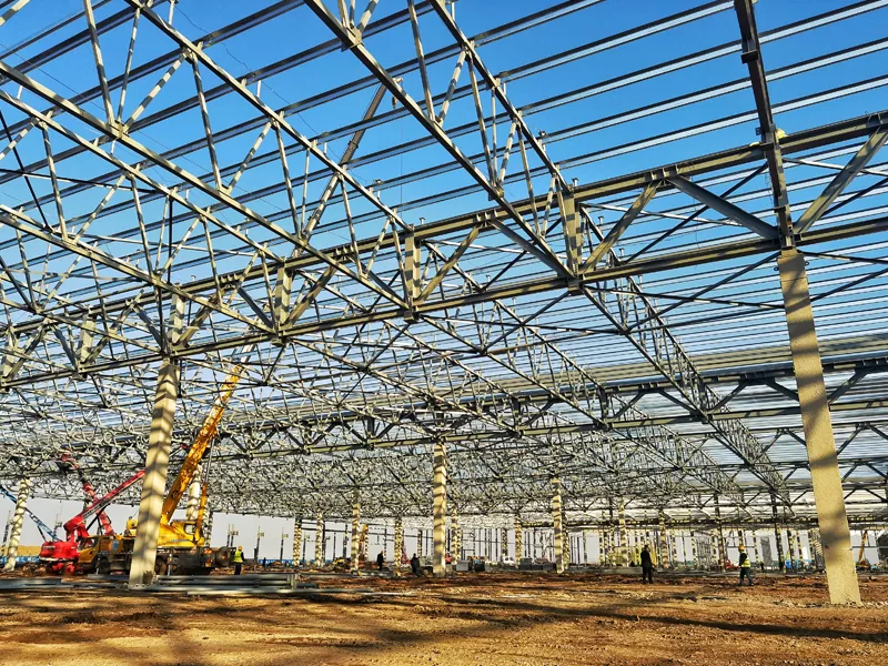 इस्पात फ्रेम फ्रेम गोदाम एक आधुनिक र कुशल भण्डारण समाधान हो र स्टीलको मुख्य संरचनात्मक सामग्रीको रूपमा। यस प्रकारको गोदामले उच्च शक्ति, स्थायित्व र लागत-प्रभावकारिता सुविधा दिन्छ, यसलाई भण्डारण सुविधाको लागि लोकप्रिय विकल्प बनाउँदछ। गोदामको फ्रेम स्टील स्तम्भहरू र राफ्टरहरू मिलेर बनेको छ, धेरै कडा र स्थिर रूपरेखा बनाइरहेका छन्। यो डिजाइनले केवल गोदामलाई सुरक्षित रूपमा भारी बोक्ने र अत्यधिक मौसम अवस्थाको सामना गर्न पनि सक्षम गर्दैन। स्टिल कम्पोनेन्टहरू कारखानामा प्रिफ्रेड गरिएको छ र त्यसपछि-साइटमा भेला भएका छन्, जसले निर्माण समय छोट्याउन सक्छ र संरचनात्मकतालाई तुच्छ तुल्याउन सक्छ।