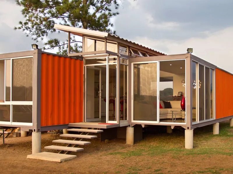 ● कन्टेनरहरू: घरको मुख्य संरचना पुनर्नवीनीकरण ढुवानी कन्टेनरहरूबाट बनाइन्छ।  यी कन्टेनरहरू भारी-कर्तव्य स्टीलबाट बनेका हुन्छन्, जसले स्थायित्व र कठोर मौसम अवस्थाहरूको प्रतिरोध सुनिश्चित गर्दछ।