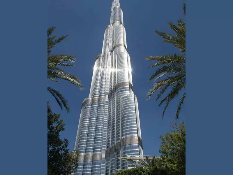 दुबई, युएईभको बर्न खलीफा भनेको इस्पात-कंक्रीट हाइब्रिड फ्रेडको साथ विश्वको सब भन्दा अग्लो भवन हो। यो 163 फ्लोरहरूमा खडा छ र 828 मिटर अग्लो छ।